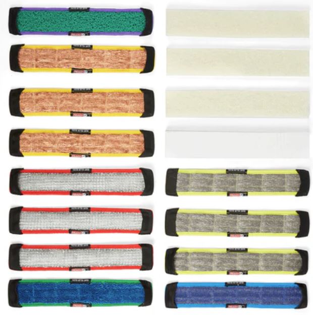 GREEN RUBBER SCRUBS – This SCRUB is unique because it is like a WHITE NON SCRATCH pad, but it is a ‘Grabber’, not a ‘Scraper’, and unlike MICROFIBER, it can self-flush in the event of a grain of sand being in its path.   Most commonly preferred for BEE POO  – GREEN RUBBER SCRUB removes both the bee poo, and the waxy residue underneath.